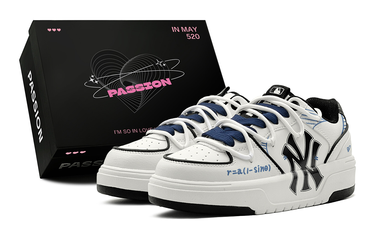 Кроссовки MLB Chunky Liner Skateboarding Shoes Unisex Low-top White, голубой