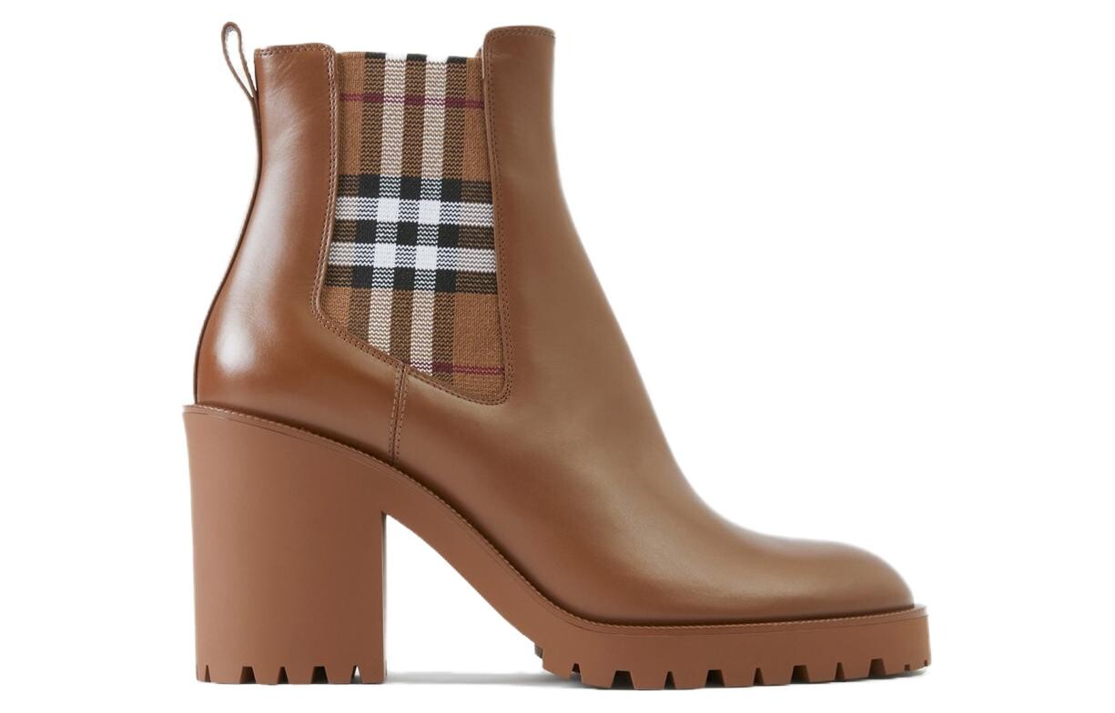 Ботильоны кожаные Burberry с клетчатыми вставками, коричневый 47 566₽