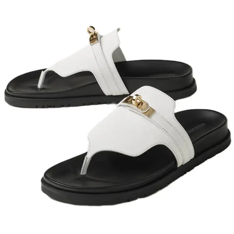 Шлепанцы женские Hermès Empire, белый / черный