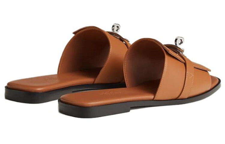 Шлепанцы женские Hermès с пряжкой, коричневый