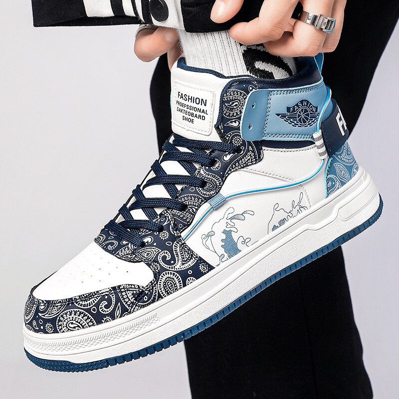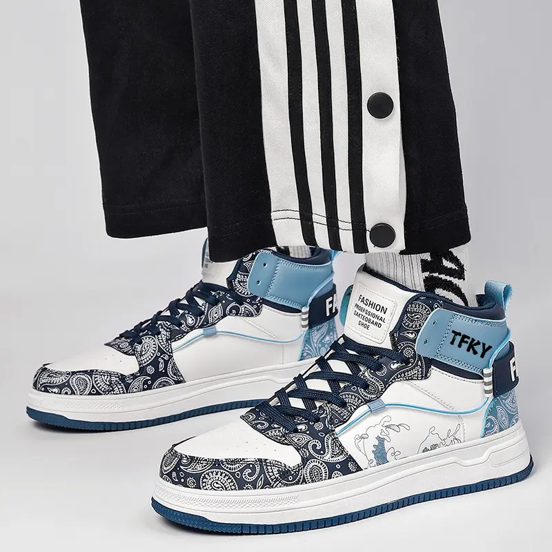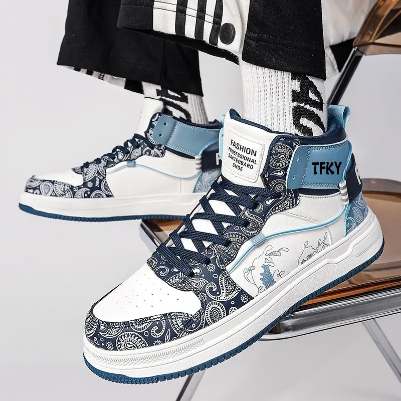 Кроссовки TFKY Skateboarding Shoes Men High-top, белый/синий
