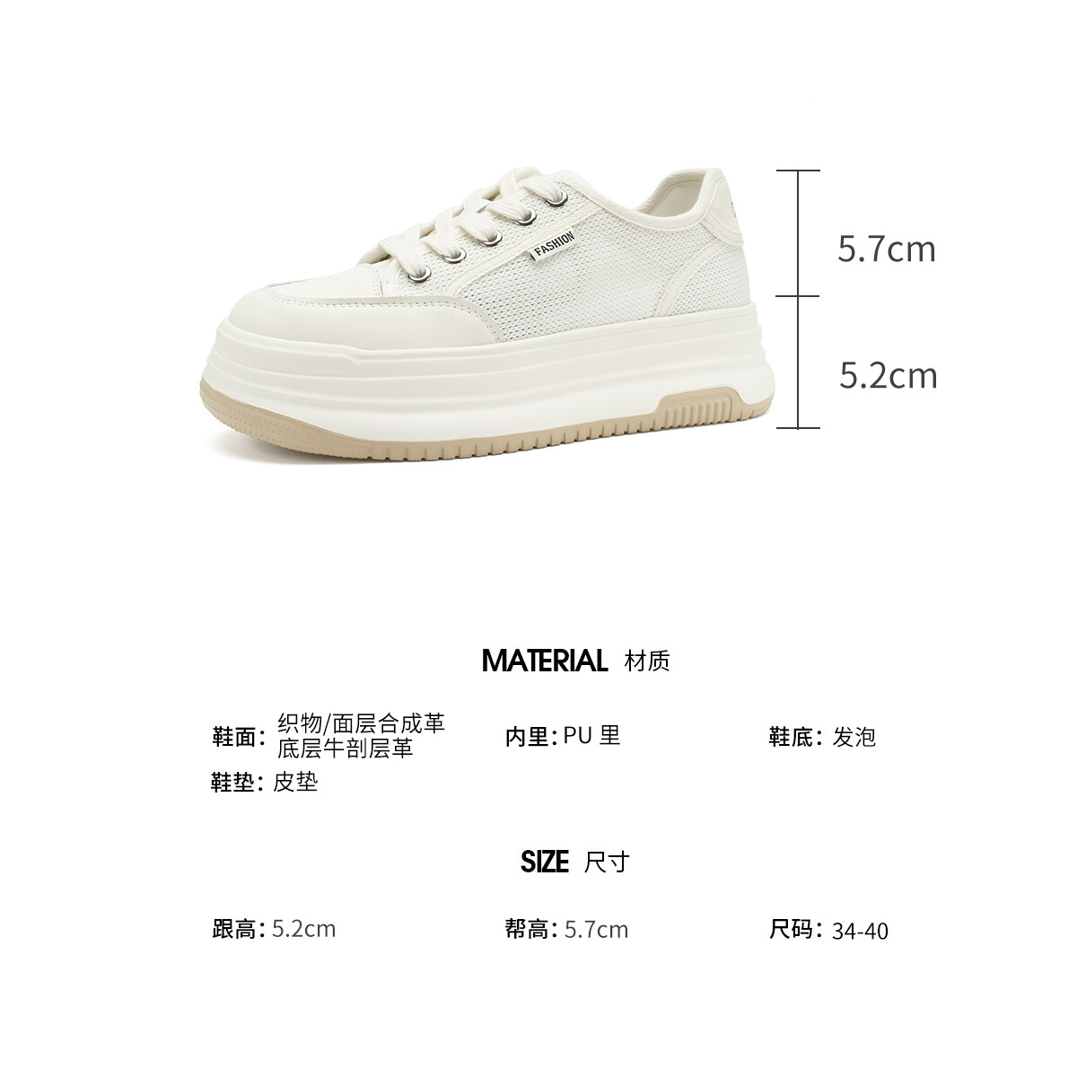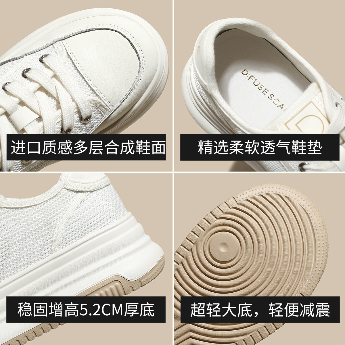 Кроссовки D:FUSE SCANDINAVIA Skateboarding Shoes Women's Low-top Beige, бежевый