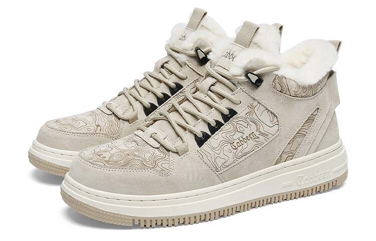 Кроссовки Cabbeen Skateboarding Shoes Men High-top, белый/черный