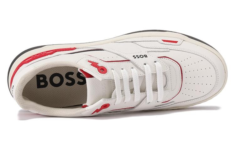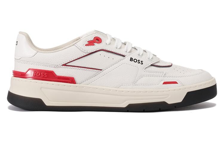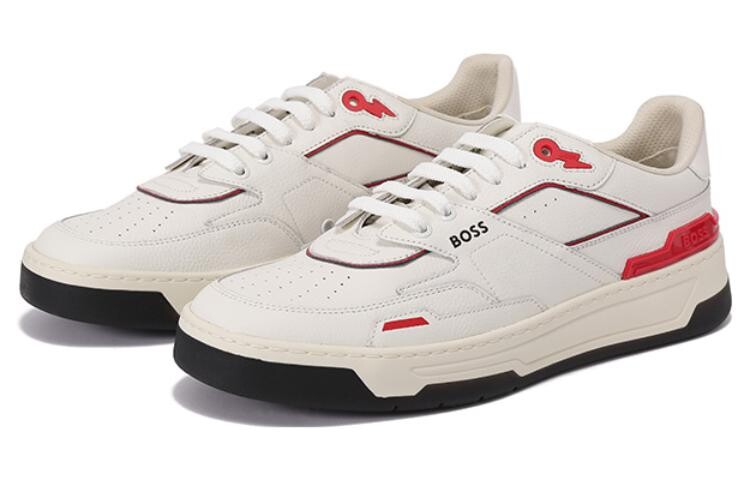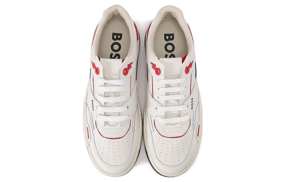 Кроссовки BOSS Logo-print Panelled Leather Sneakers, белый/красный