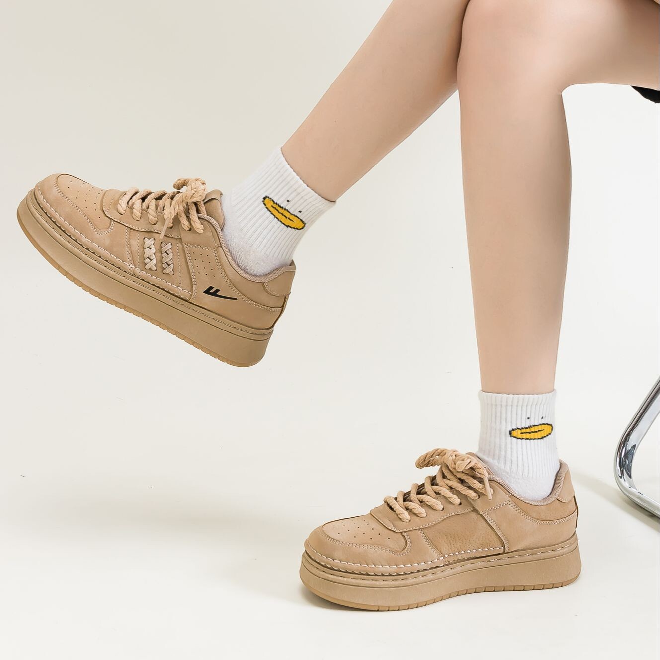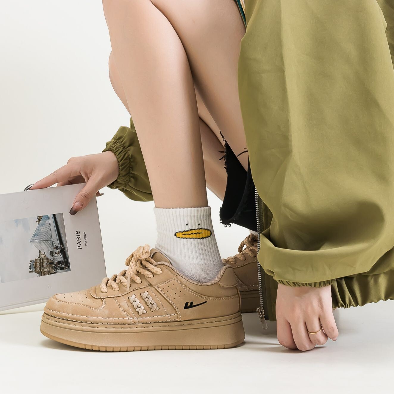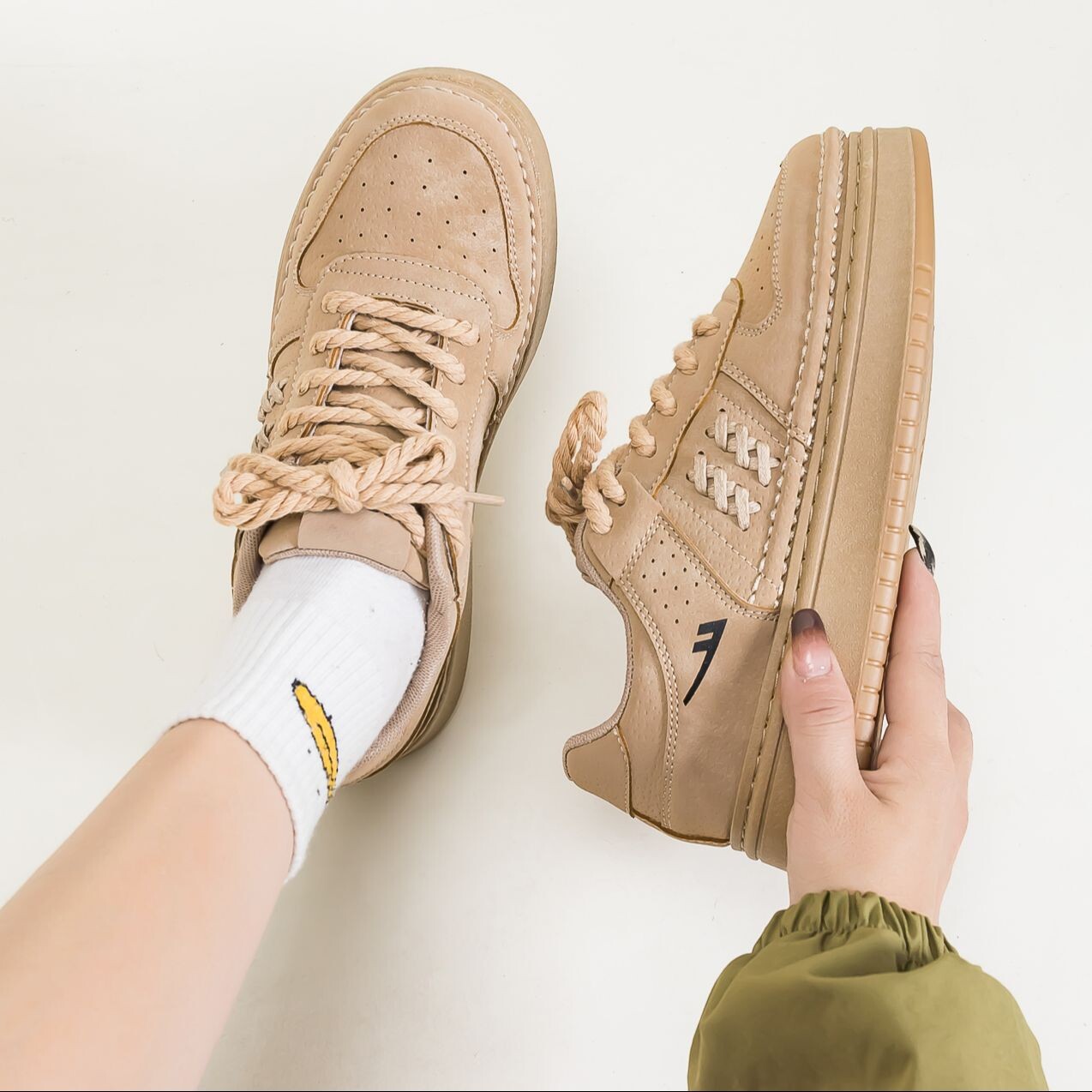 Кроссовки WARRIOR Skateboarding Shoes Unisex Low-top Khaki, хаки 2 117₽