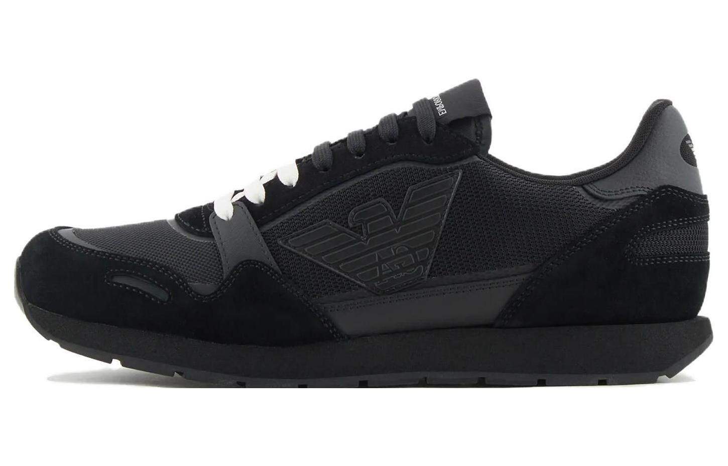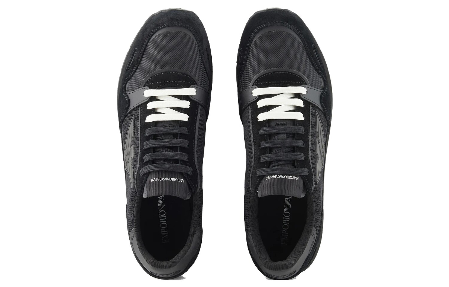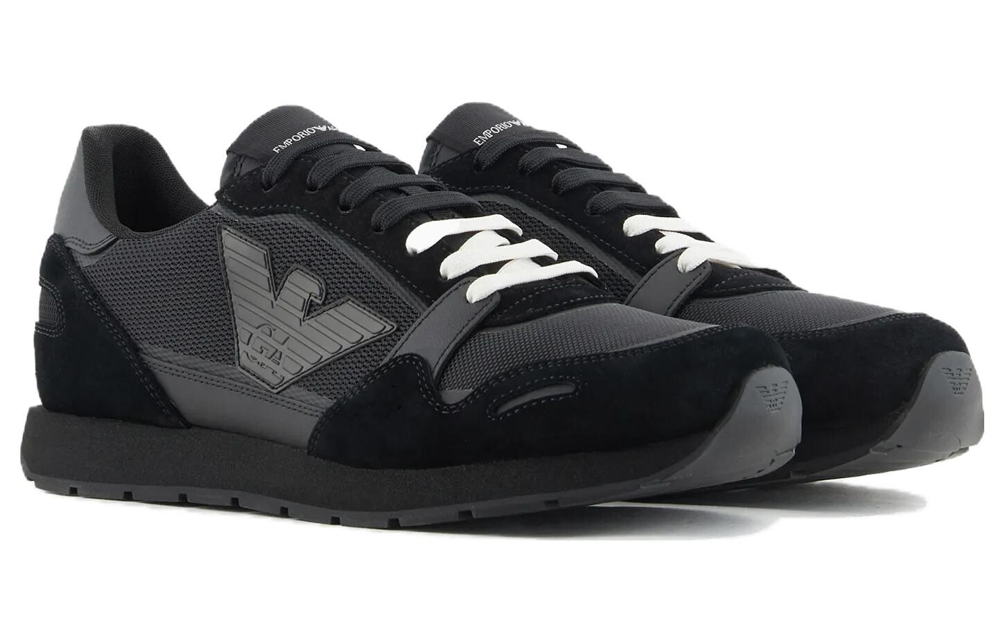 Кроссовки EMPORIO ARMANI Logo-appliqué Suede Sneakers, черный