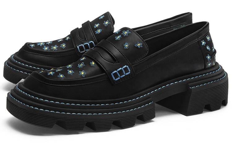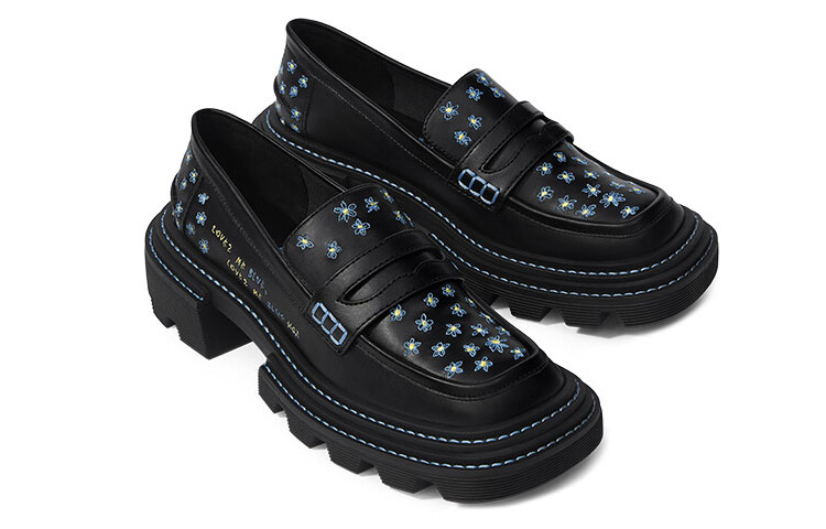 Туфли на платформе женские низкие черные Charles&Keith