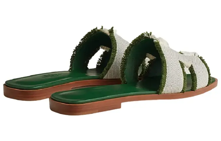 Сандалии Hermès Vert Canvas, зеленый / белый