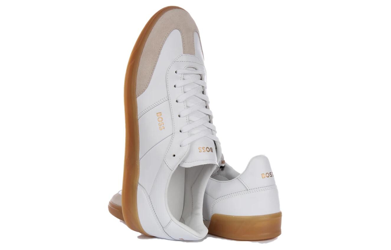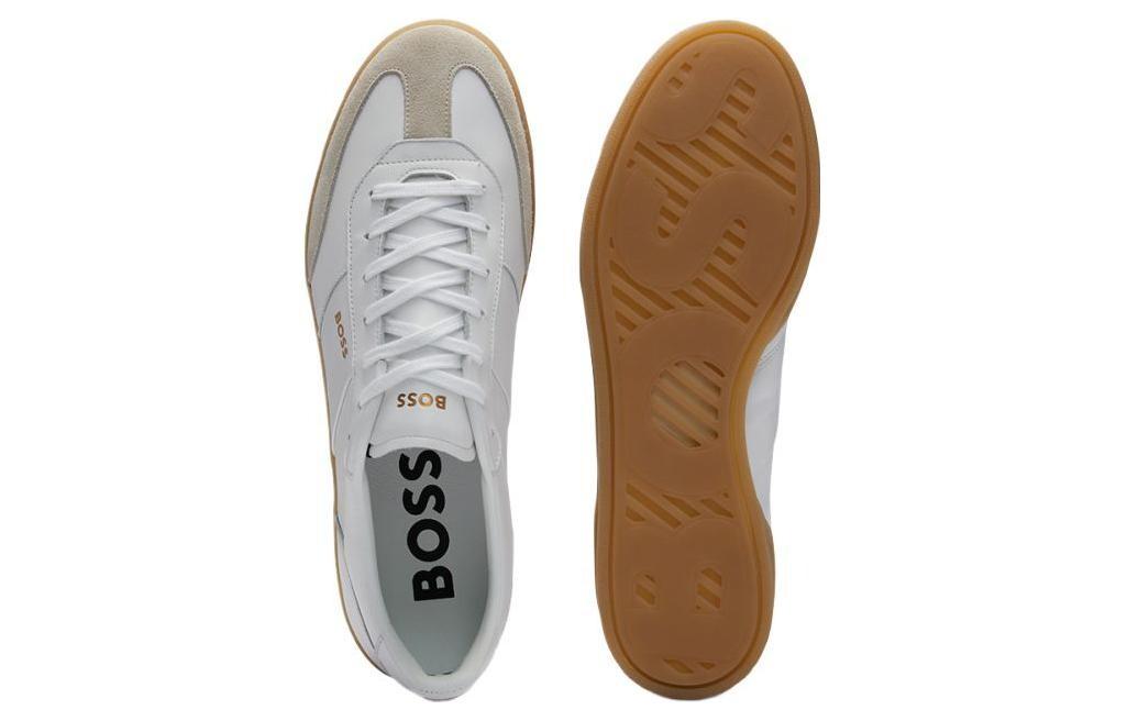Кроссовки BOSS Embossed-logo Leather Sneakers, белый