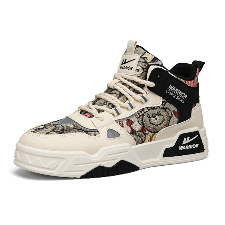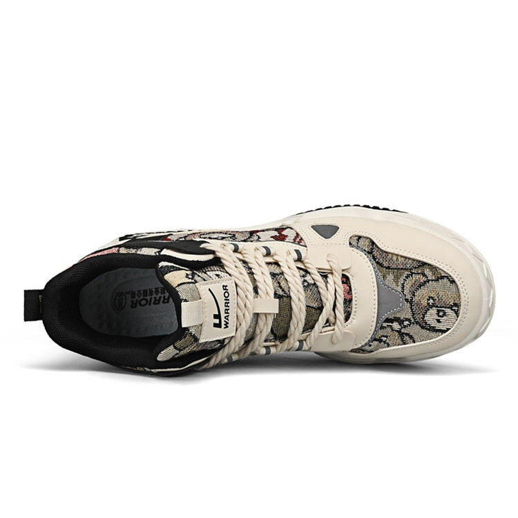 Он принимает классическую форму обуви и включает в себя новые детали. Верх выполнен из синтетической кожи, а общий стиль прост и богат текстурой. Подошвы украшены богатым узором.