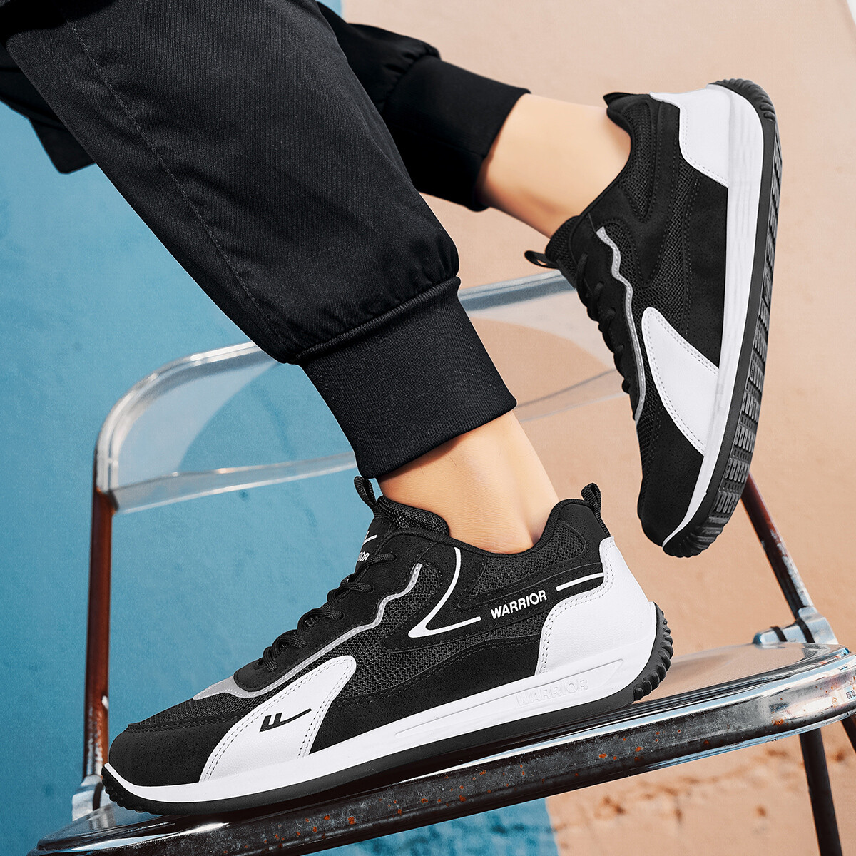 Кроссовки WARRIOR Skateboarding Shoes Men Low-top Black/white, черный/белый