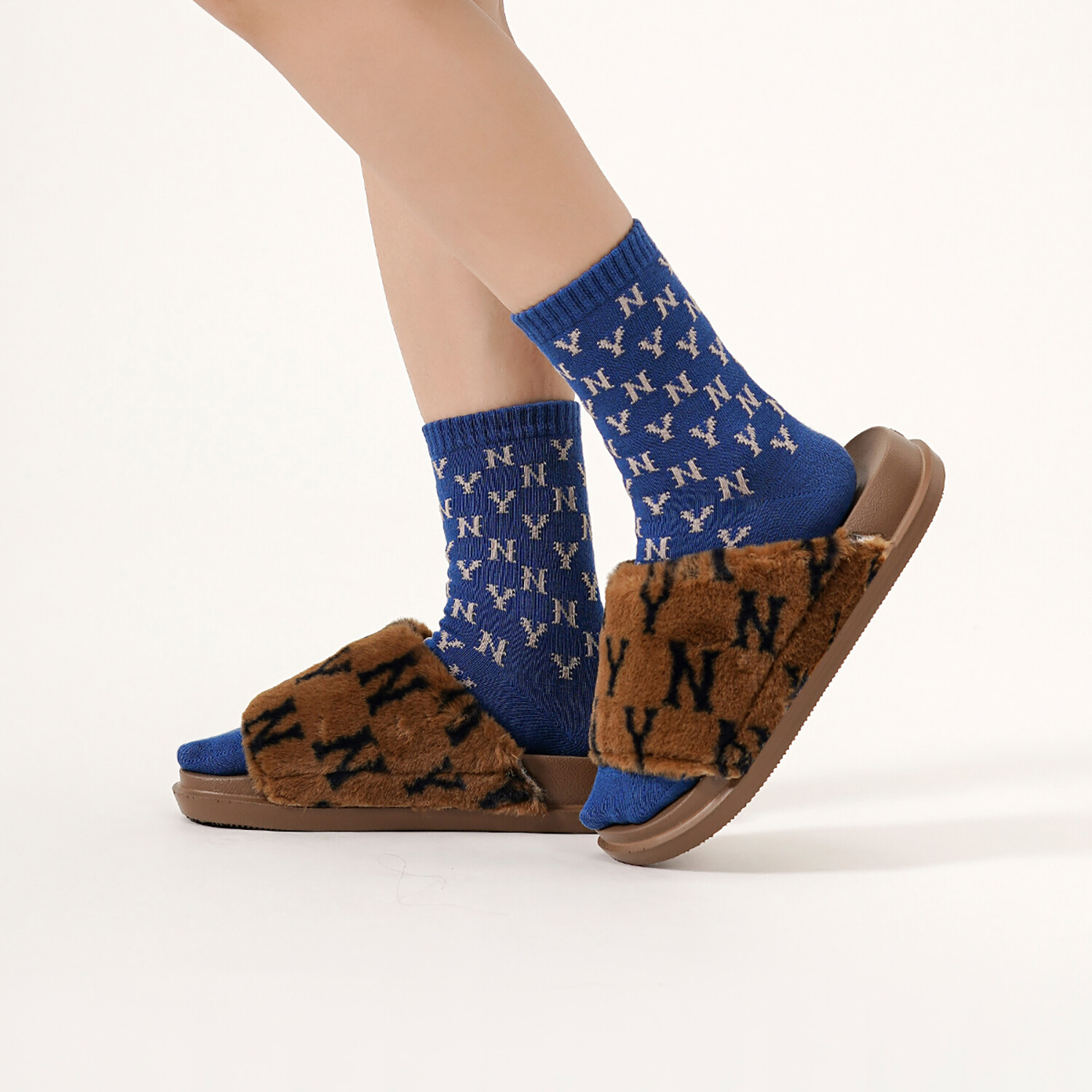 Шлепанцы-тапочки унисекс коричневые/черные Mlb