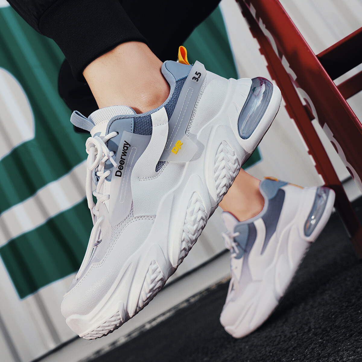 Кроссовки DEERWAY Chunky Sneakers Men Low-top, белый/синий