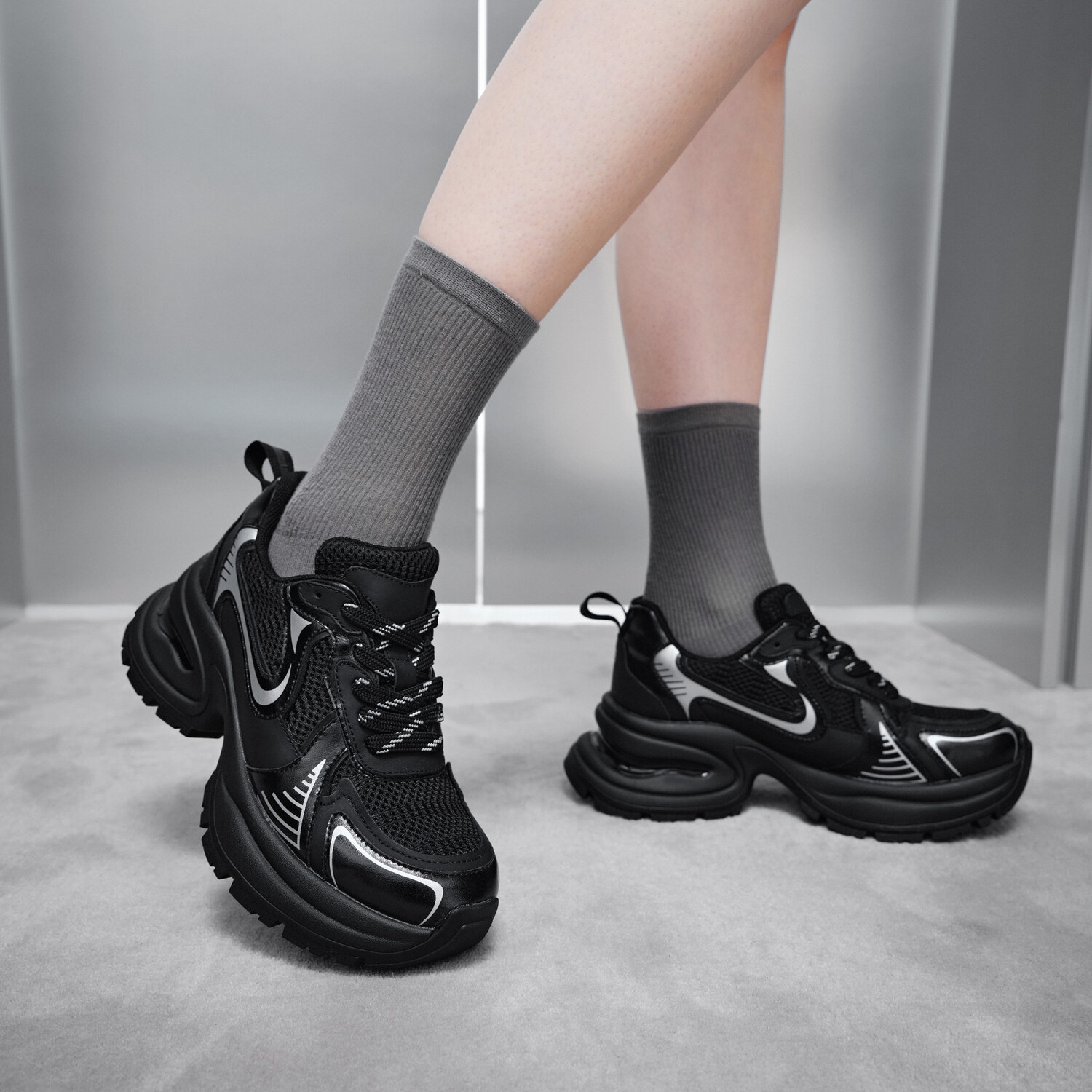 Кроссовки GG-CC Chunky Sneakers Women's Low-top, серебряный