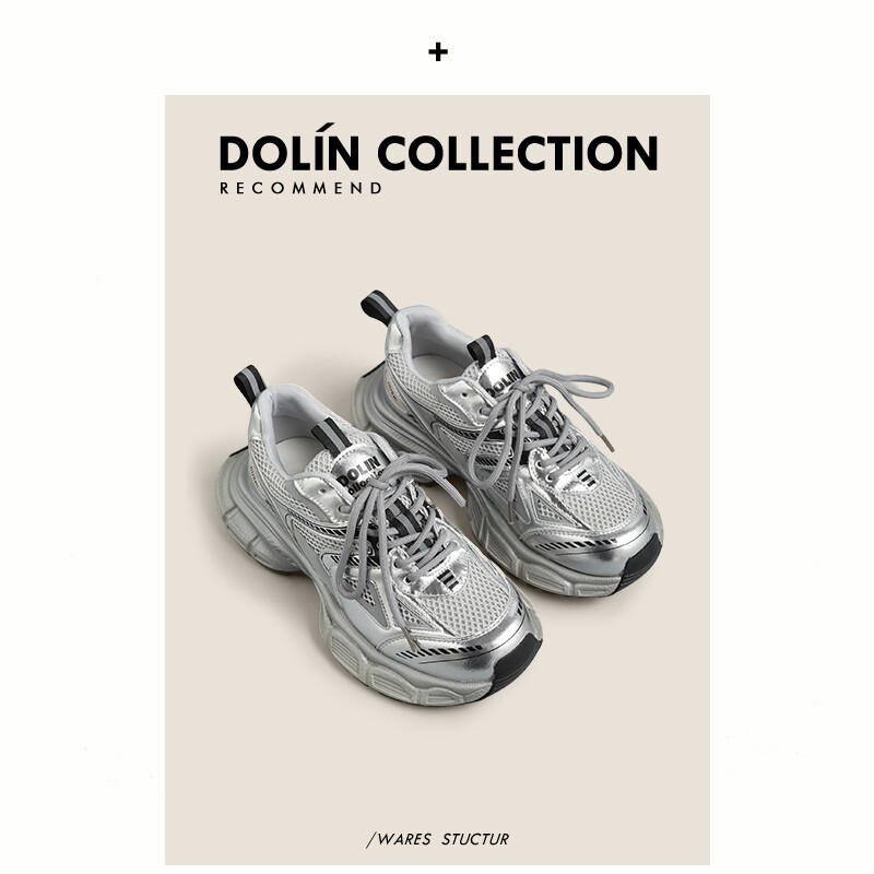 Кроссовки DOLIN COLLECTION Chunky Sneakers Women's Low-top, серебряный 5 168₽
