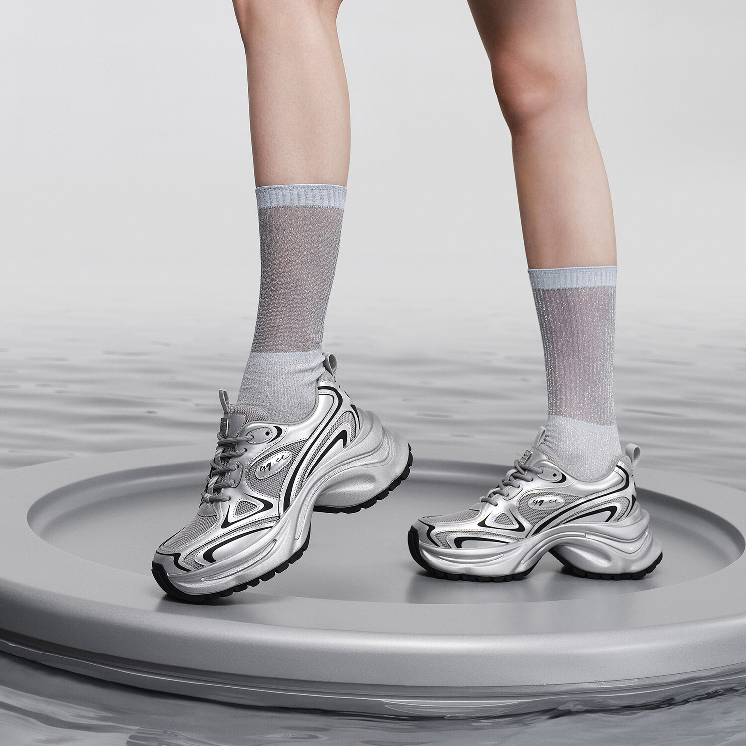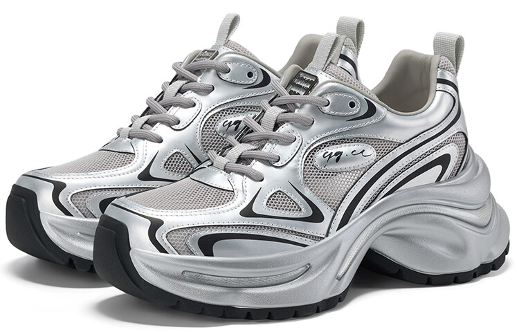 Кроссовки GG-CC Chunky Sneakers Women's Low-top, серебряный