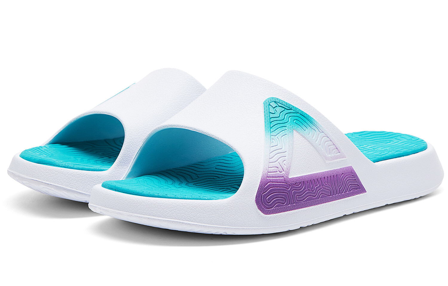 Шлепанцы женские большие белые ярко-бирюзовые Peak