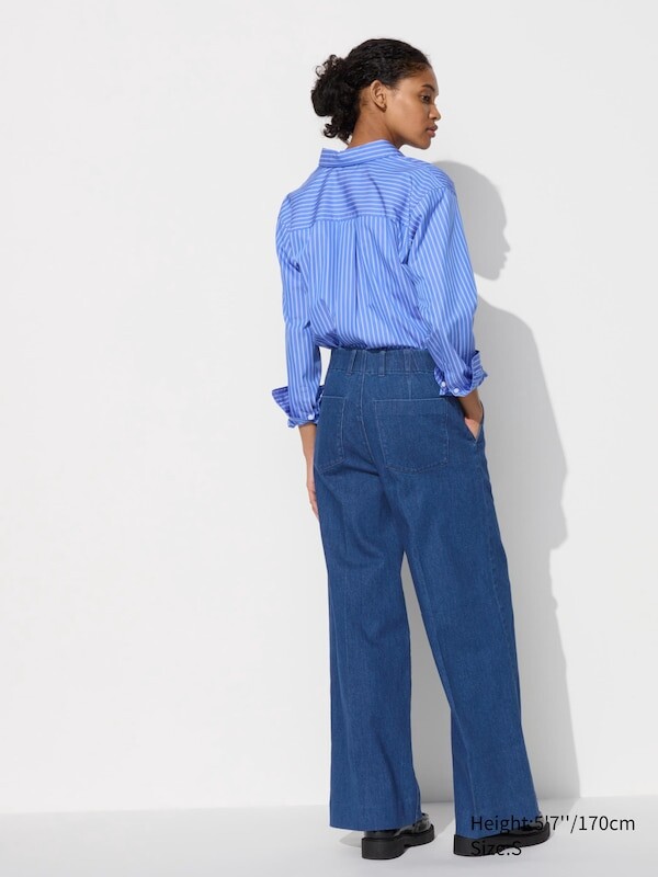 Изящная талия и широкая посадка, ниспадающая прямо к подолу, подчеркивающему фигуру.