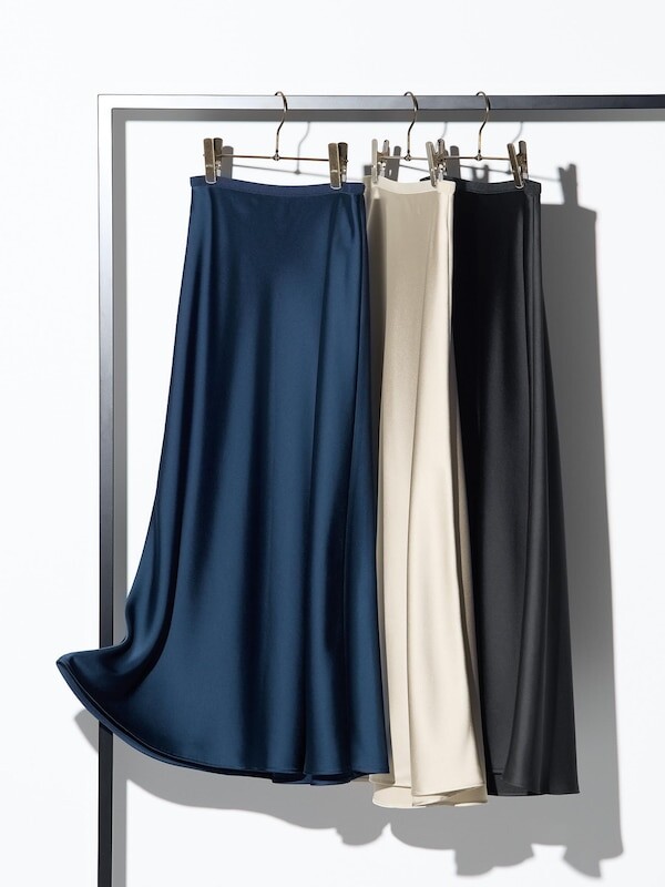 Атласная юбка Uniqlo, черный