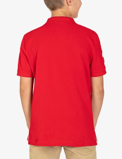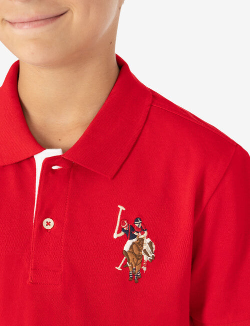 Футболка поло для мальчиков с многоцветным логотипом U.S. Polo Assn. — это вневременный предмет гардероба. Модель украшена воротником с контрастной передней планкой на двух пуговицах, большим разноцветным вышитым логотипом вдоль верхней левой части груди и короткими рукавами с манжетами из резинки. Футболка украшена аппликацией в виде цифры три на правом рукаве и отделана разрезами по подолу с контрастной тесьмой. Изделие выполнено в классическом стиле рубашки поло и имеет свободный силуэт для удобной посадки.