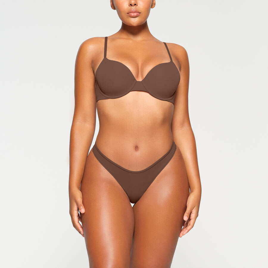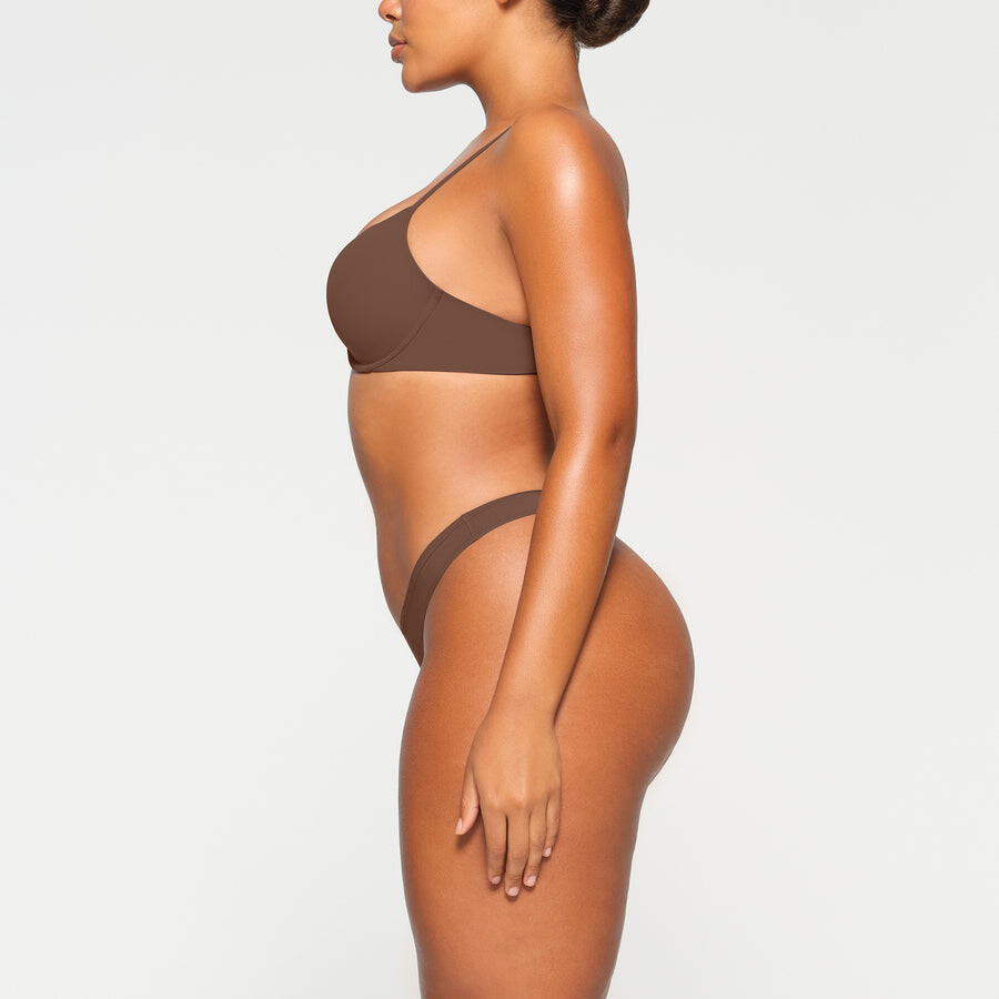 Бюстгальтер-футболка, с которого все началось. Этот классический бюстгальтер с полуобхватом имеет технологию 360-stretch для индивидуальной посадки, даже если у вас промежуточный размер. Изготовлен из нашей фирменной мягкой как масло ткани с ощущением второй кожи, заставляющей вас забыть, что вы носите бюстгальтер. Обеспечивает непревзойденную поддержку благодаря слегка подбитым чашкам и гибким косточкам, которые не впиваются. Имеет регулируемые бретели и застежку на крючки и петли сзади. Идеально подходит для вашего размера бюстгальтера SKIMS.