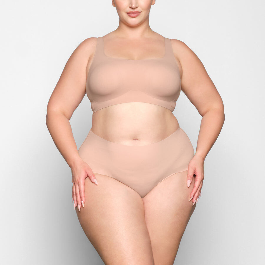 Вы захотите носить этот полностью закрывающий, маслянисто-мягкий бюстгальтер-бралетт с круглым вырезом каждый день. Съемные подушечки позволяют легко носить его так, как вам удобно, а сглаживающее крыло обеспечивает поддержку наилучшим образом. Этот в основном удобный стиль без бретелей имеет полностью регулируемые бретели, тональный матовый 3D-логотип SKIMS и застежку на крючки сзади. Подходит точно по размеру вашего бюстгальтера SKIMS. Дополните свой комплект нашими трусиками по специальной цене набора.