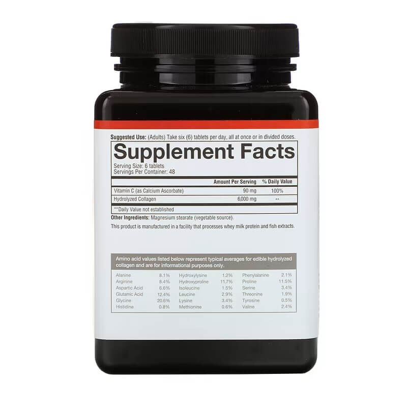 Витамин С (в виде аскорбата кальция), Гидролизованный коллаген, Аланин, Аргинин, Аспарагиновая кислота, Глютаминовая кислота, Глицин, Гистидин, Гидроксилизин, Гидроксипролин, изолейцин, Лейцин, Лизин, Метионин, Фенилаланин, Пролин, Серин, Треонин, Тирозин, Валин