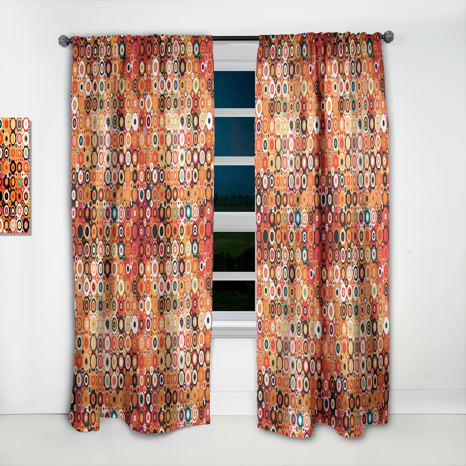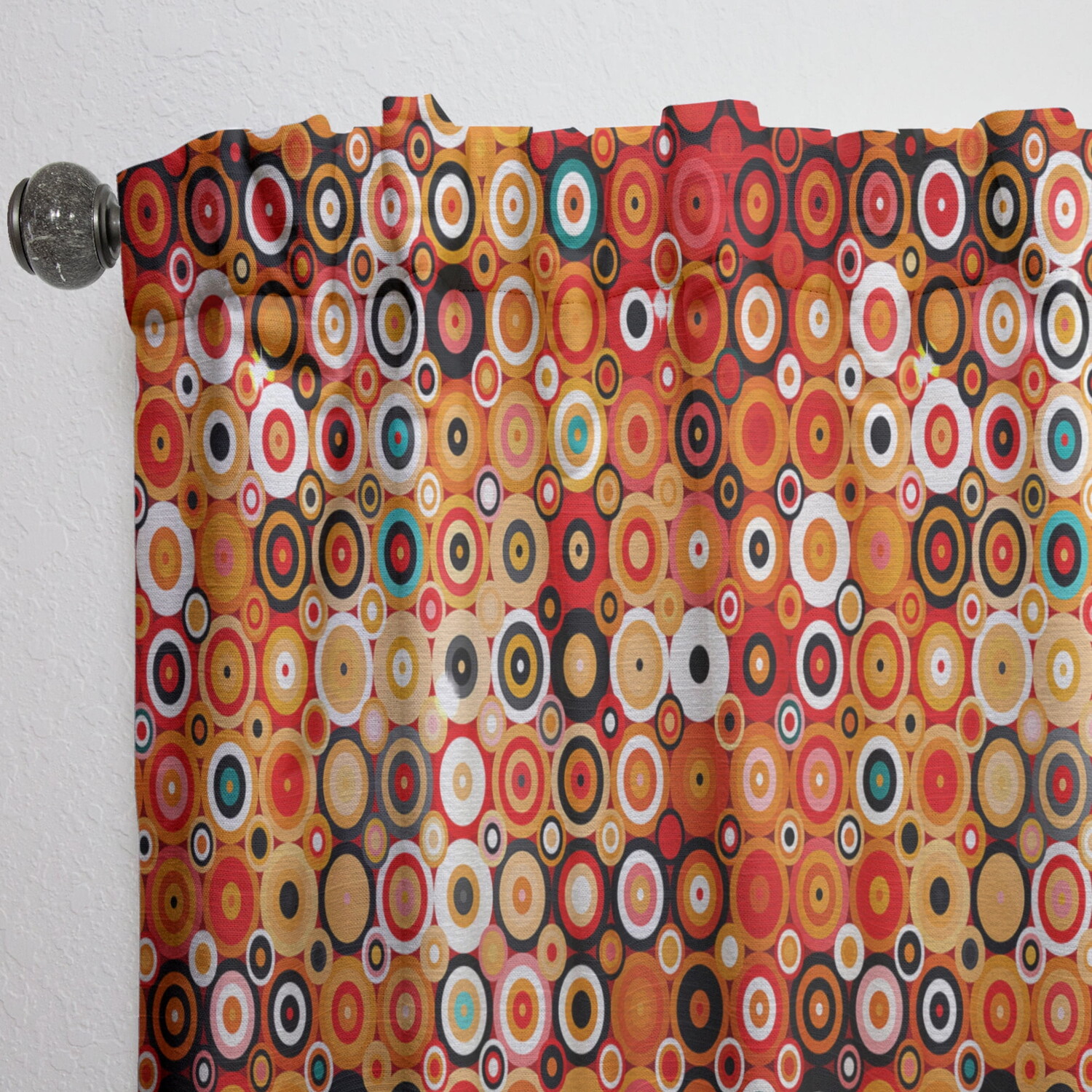 Подчеркните и украсьте свои окна в любой комнате вашего дома или офиса с помощью этой занавески в стиле диско с точками и кругами. Эта элегантная штора в богемном и эклектическом стиле напечатана с использованием высококачественных экологически устойчивых чернил и изготавливается вручную по запросу специально для вас. Ткань из искусственного льна изготовлена ​​из полиэстера плотностью 270 г/м2, что позволяет полностью и безопасно стирать эту красную штору в машине.
