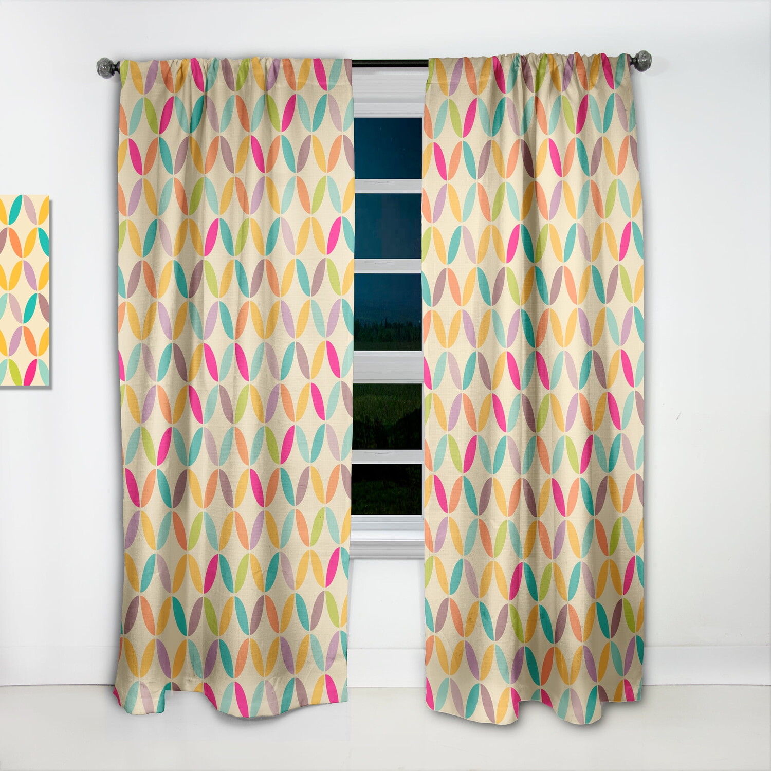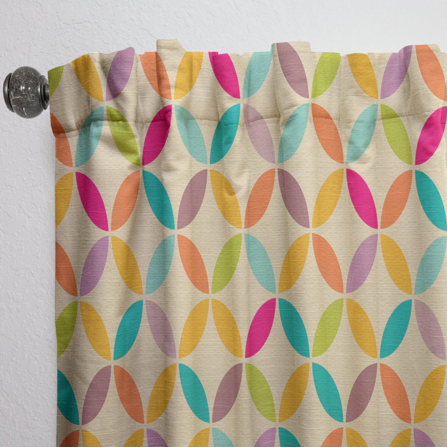 Подчеркните и украсьте свои окна в любой комнате вашего дома или офиса с помощью этой винтажной занавески с абстрактным бесшовным узором. Эта элегантная занавеска Modern & Contemporary напечатана с использованием высококачественных экологически устойчивых чернил и изготавливается вручную по запросу специально для вас. Ткань из искусственного льна изготовлена ​​из полиэстера плотностью 270 г/м2, что позволяет полностью и безопасно стирать эту многоцветную штору в машине.