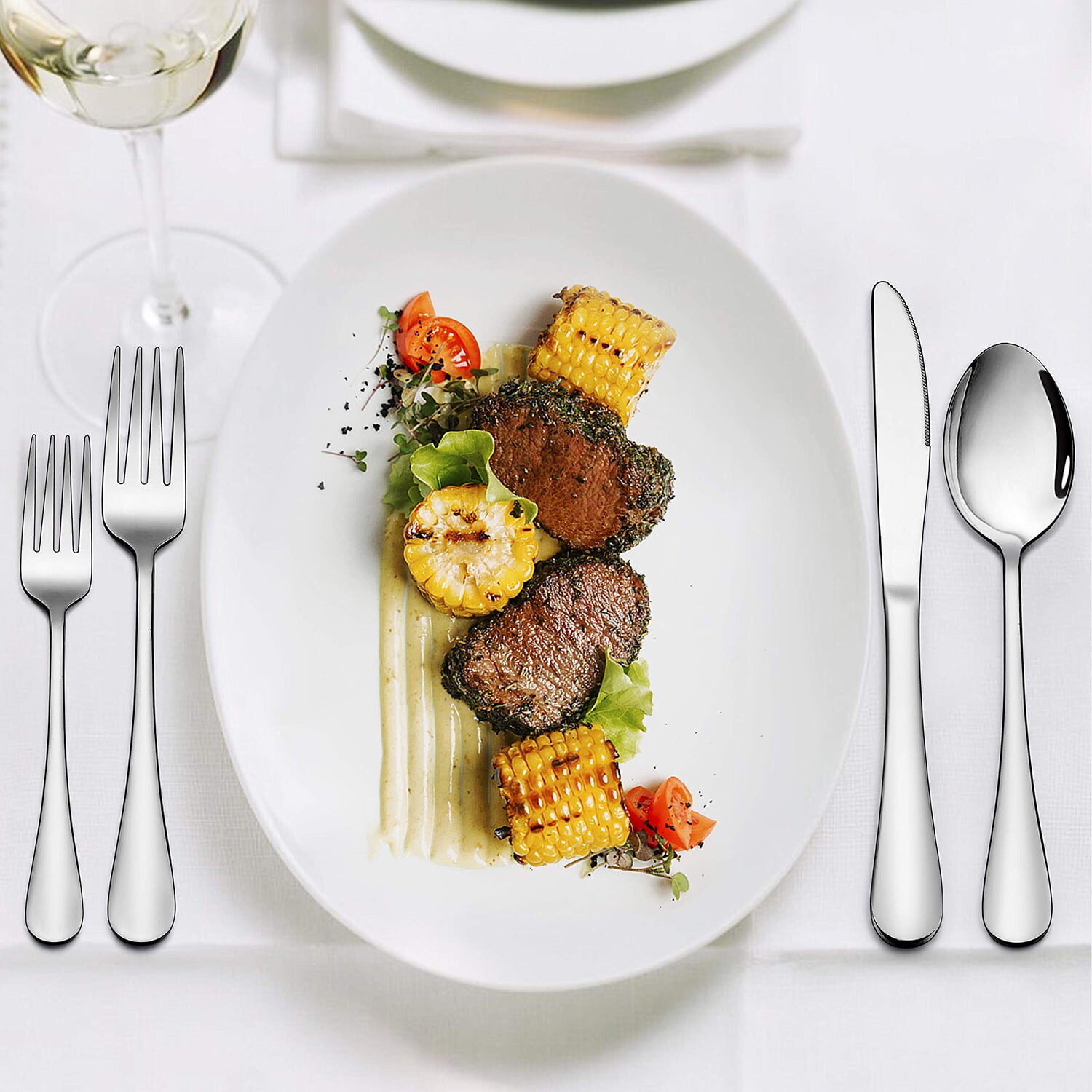 Набор сверхпрочного серебра Vesteel из 45 предметов изготовлен из высококачественной нержавеющей стали, которая нетоксична и устойчива к ржавчине, толстая и прочная конструкция прослужит долгий срок службы; Правильный вес обеспечит вам отличное чувство руки; Стильный внешний вид всегда остается блестящим благодаря зеркальной полировке; Лаконичный дизайн без лишнего рисунка может гармонично вписаться в существующие настройки стола; Дополнительные 5 сервировочных приборов, многофункциональные для официальных и повседневных мероприятий; Эта посуда действительно идеально подходит для большой семьи, ресторана, фермерского дома, развлечений, свадьбы, фуршета, вечеринки, пикника; Также это отличный подарок на новоселье, День Благодарения, Рождество и т. д.