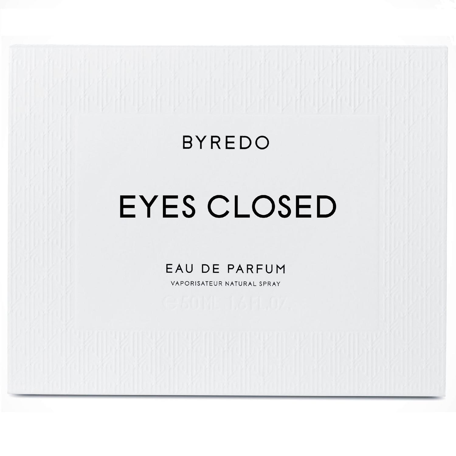Byredo Eyes Closed — древесно-пряный унисекс-парфюм, выпущенный в 2022 году шведским брендом Byredo. Как обонятельный опыт, который вызывает чувство связи, но при этом сбивает с толку ожидания, Eyes Closed (Закрытые глаза) перекликается с идеей древнего и современного мира в своей конструкции. Закрытые глаза нарушают первенство визуального и открывают другой мир воображения и эмоций. Парфюм отражают своеобразную синестезию парфюмерного мира: то, как вы можете «видеть» аромат и ощущать ольфакторные эмоции.