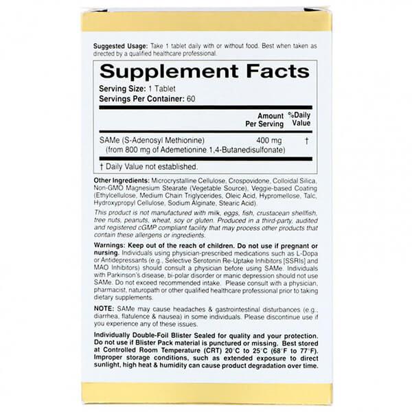 SAMe (S-аденозилметионин) представляет собой соединение, которое используется организмом для производства и регулирования гормонов и поддержания клеточных мембран. Хотя организм может вырабатывать SAMe сам по себе, SAMe от California Gold Nutrition может помочь поддерживать его уровень на оптимальном уровне, поддерживать здоровье суставов, печени и настроение.
