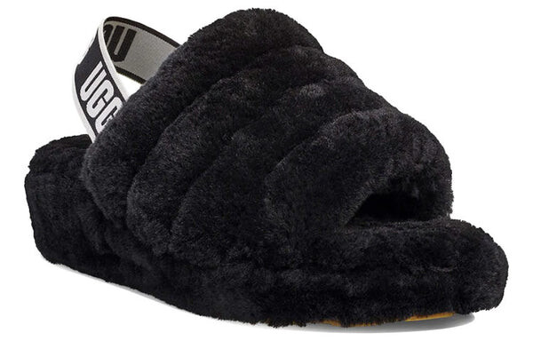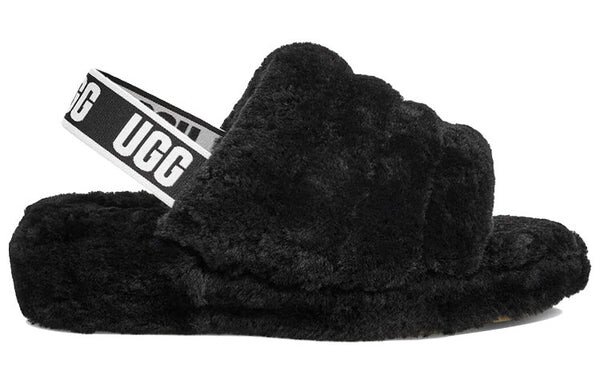 Сандалии пушистые да слайд толстая подошва тапочки Ugg, черный
