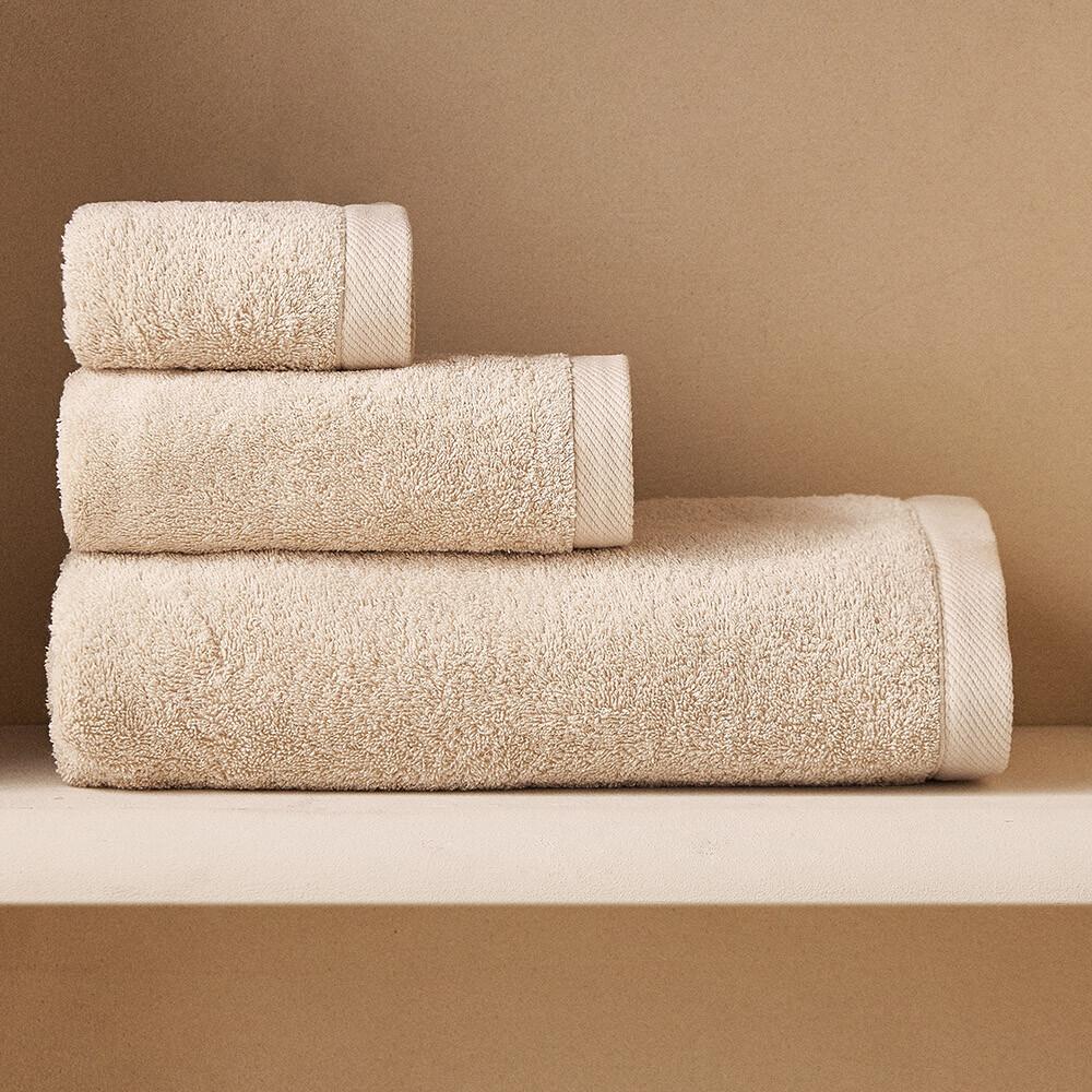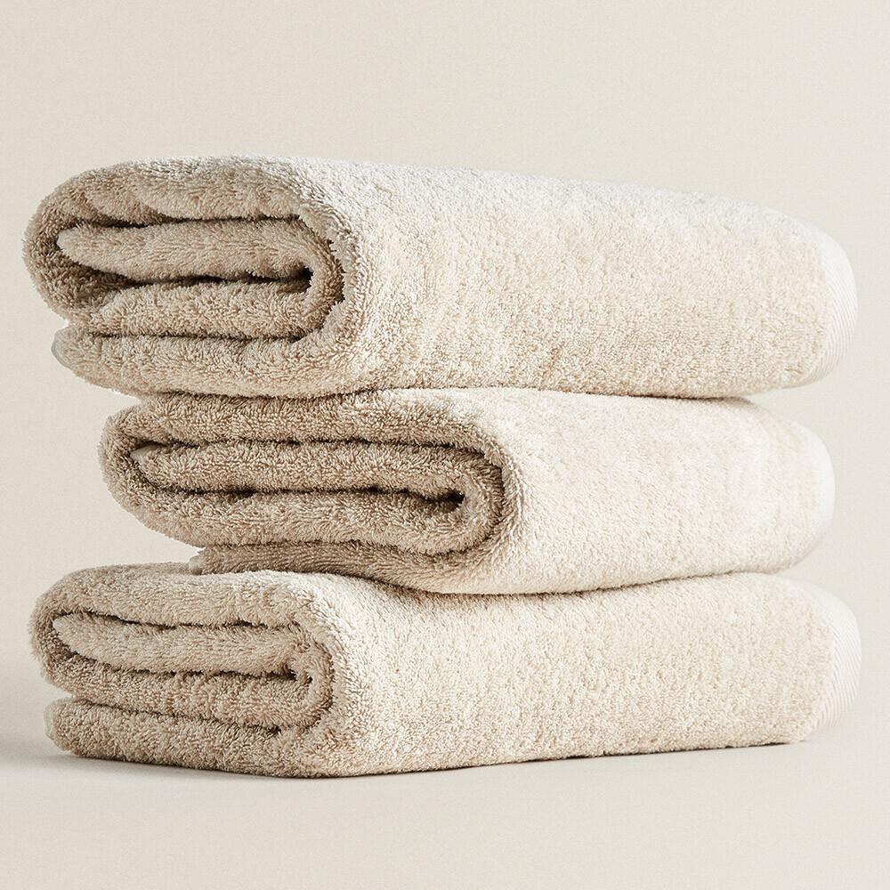 Полотенце Zara Home бежевого цвета из экологически чистой махровой хлопковой ткани.