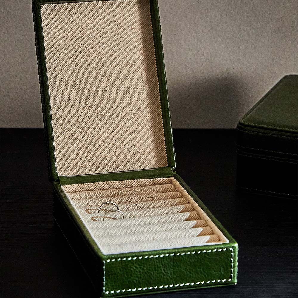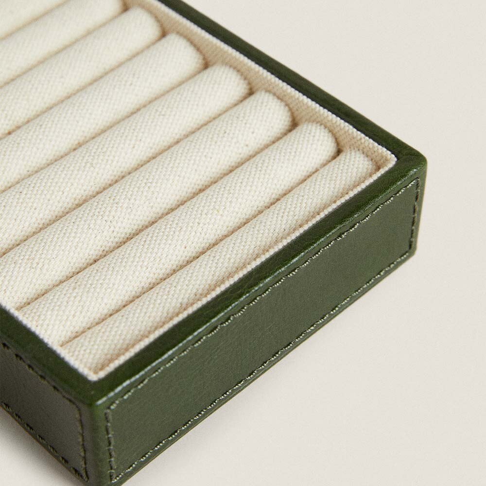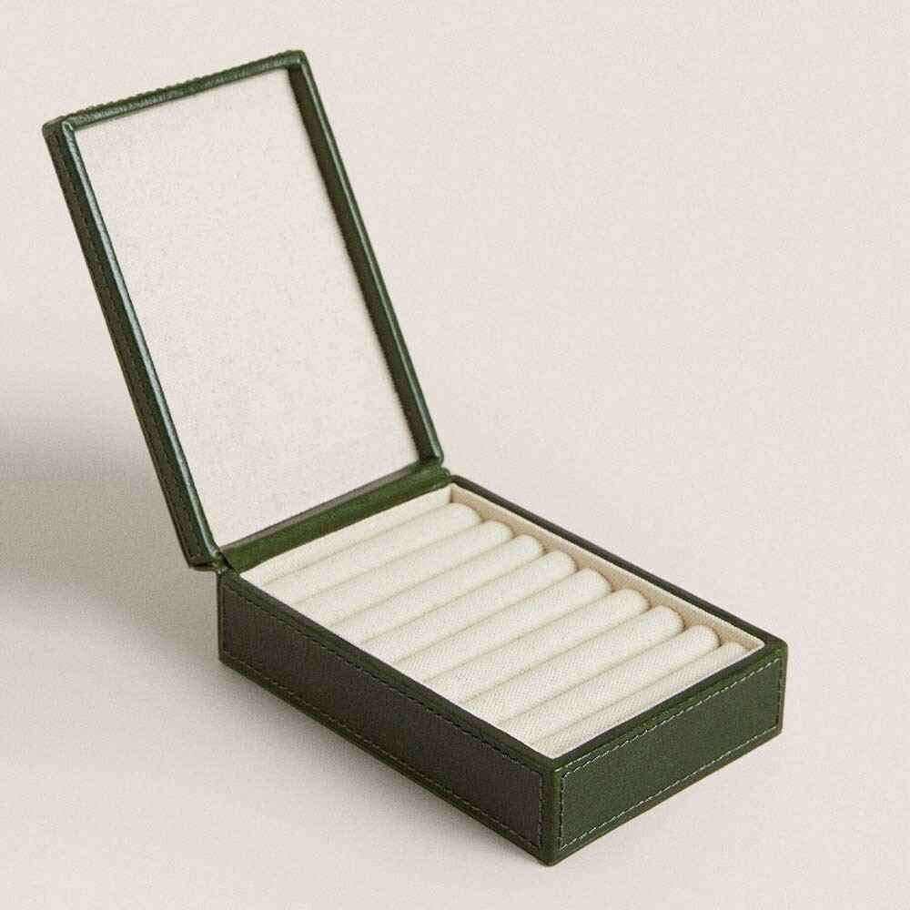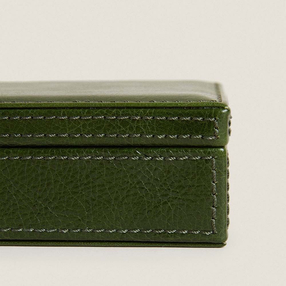 Зеленая кожаная шкатулка Zara Home с крышкой.