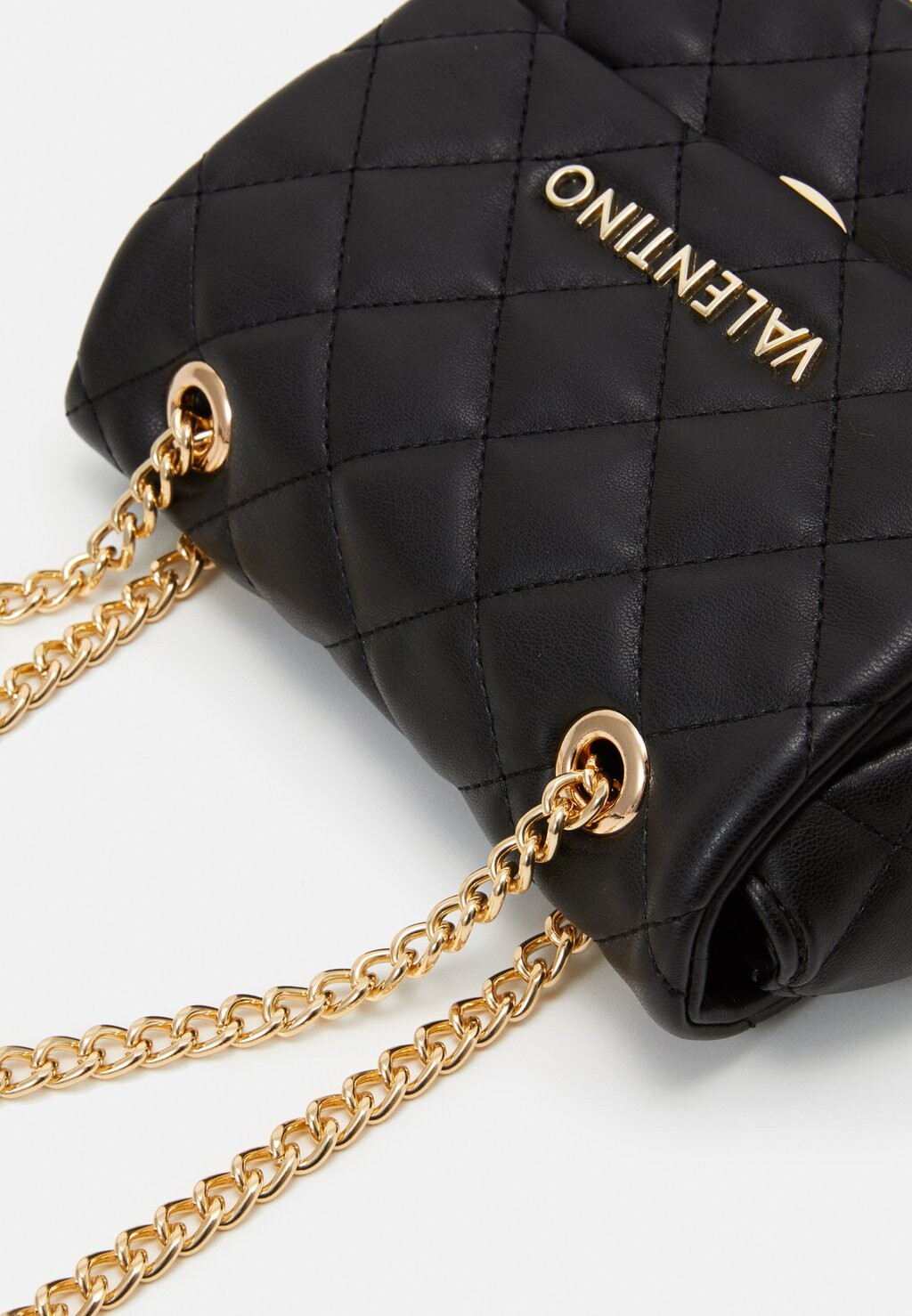 Сумка на плечо Valentino стеганая с клапаном и золотой фурнитурой, черный