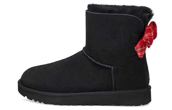 Ботинки зимние UGG с бантом и клетчатой лентой, черный