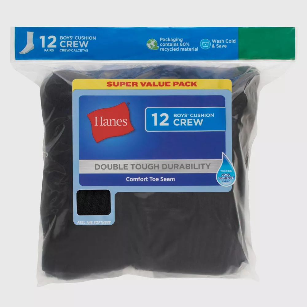 Носки Hanes Boys' 12pk Cushioned Crew Athletic Socks, цвет Black