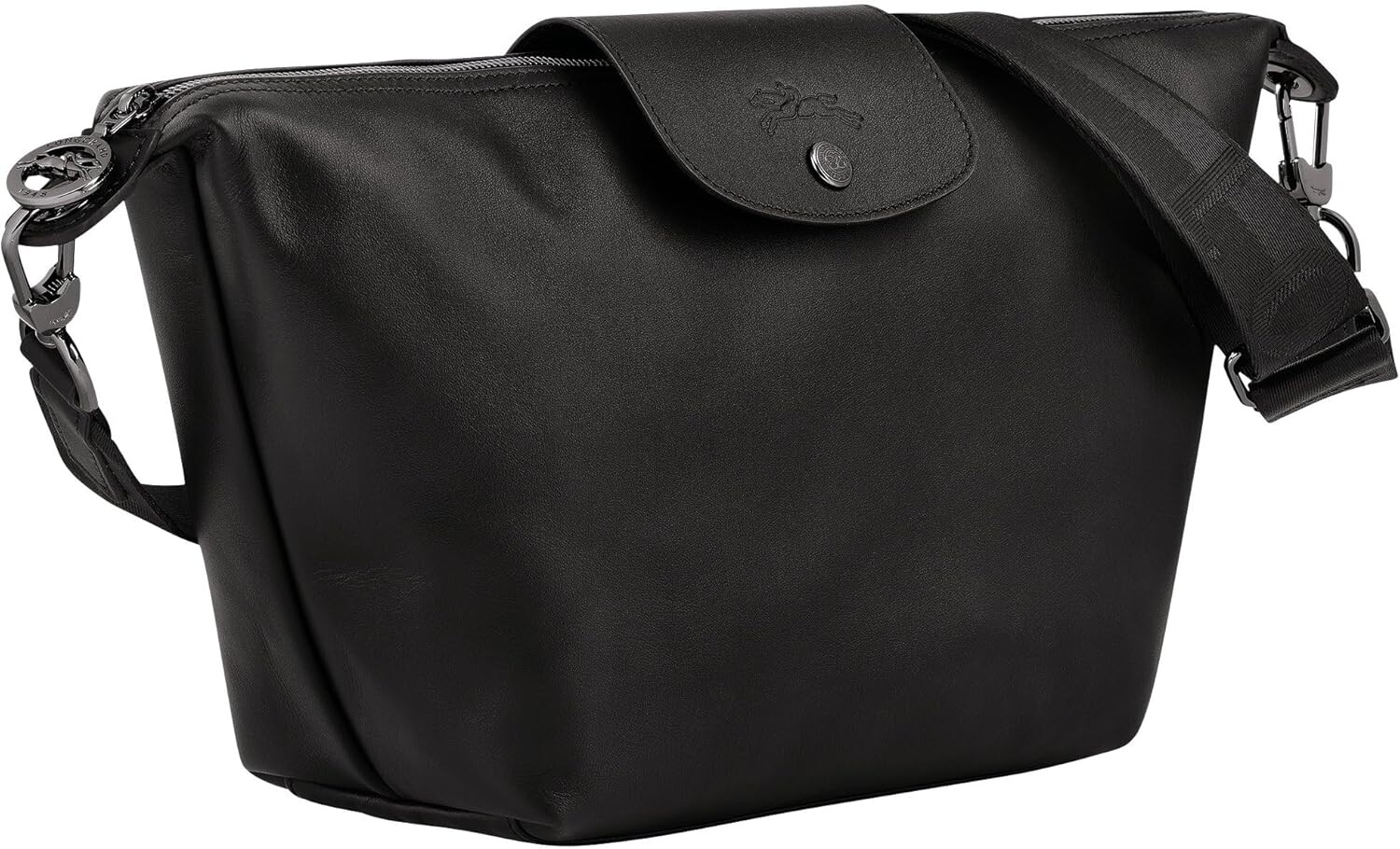 Сумка-хобо Longchamp Le Pliage из кожи среднего размера, черная 54 865₽