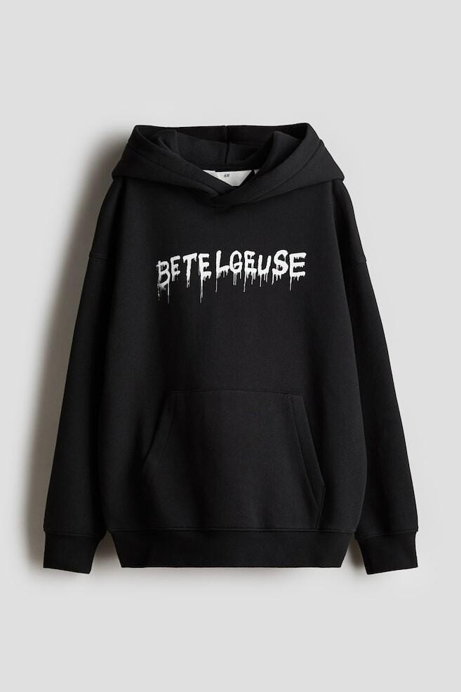 Бренд: H&M Цвет: черный Рубашка свободного кроя с капюшоном из пота и мягкой начесовой изнанкой. С мотивной вышивкой спереди, накладным капюшоном на трикотажной подкладке и большим вырезом на плечах. Спереди карман-кенгуру. Ребристые манжеты и нижний край. ДЛИНА: Стандартная длина ДЛИНА РУКАВА: Длинный рукав ФИКАЦИЯ: Свободный крой СТИЛЬ: Толстовка ОПИСАНИЕ: Черный/Белый, Бетельгейзе, Битлджус