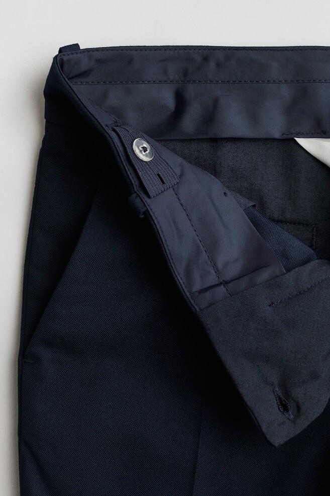 Бренд: H&M Цвет: синий Костюмные брюки из тканого материала с регулируемой эластичной талией. Ширинка на молнии с застежкой на крючок и пуговицей. Боковые карманы, прорезные задние карманы и зауженные брючины со складками. ДЛИНА: Длинная Высота талии: Нормальная высота талии Посадка: Slim Fit СТИЛЬ: Брюки-смокинг ОПИСАНИЕ: Темно-синий, один цвет Обратите внимание: регулируемый пояс.