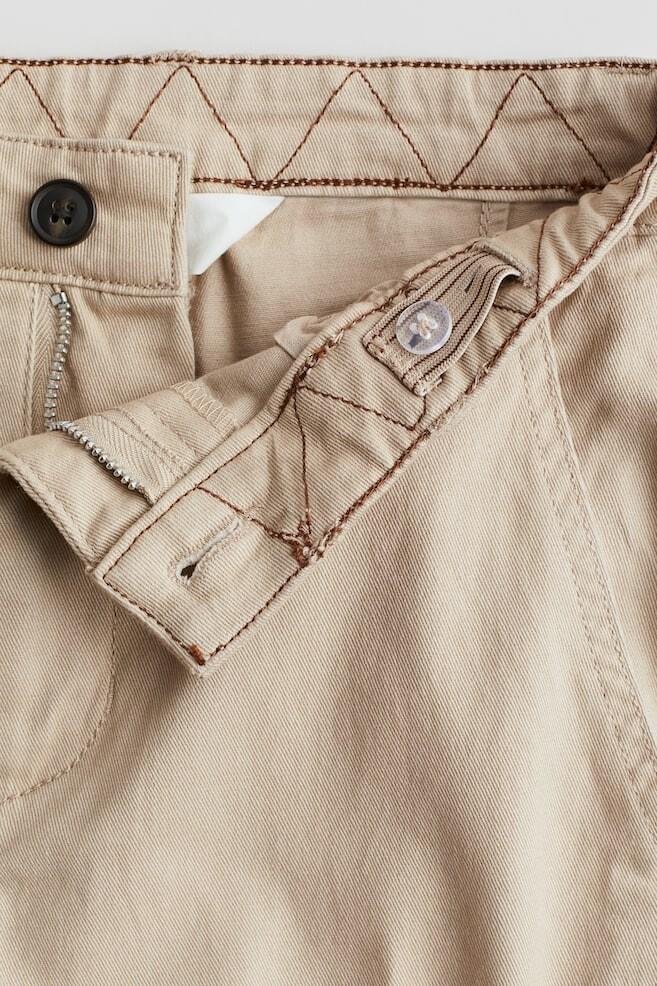 Бренд: H&M Цвет: бежевый Чино из эластичного хлопкового твила с классической посадкой на бедрах, бедрах и ногах. Пояс с регулируемой резинкой, ширинкой на молнии и пуговице, косыми боковыми карманами и прорезным карманом на пуговице сзади. ДЛИНА: Длинная Высота талии: Нормальная высота талии ПОСАДКА: Обычная посадка СТИЛЬ Состав: Чинос, прямые брюки. ОПИСАНИЕ: Бежевый, один цвет. СТОИТ ЗНАТЬ: Регулируемый пояс.