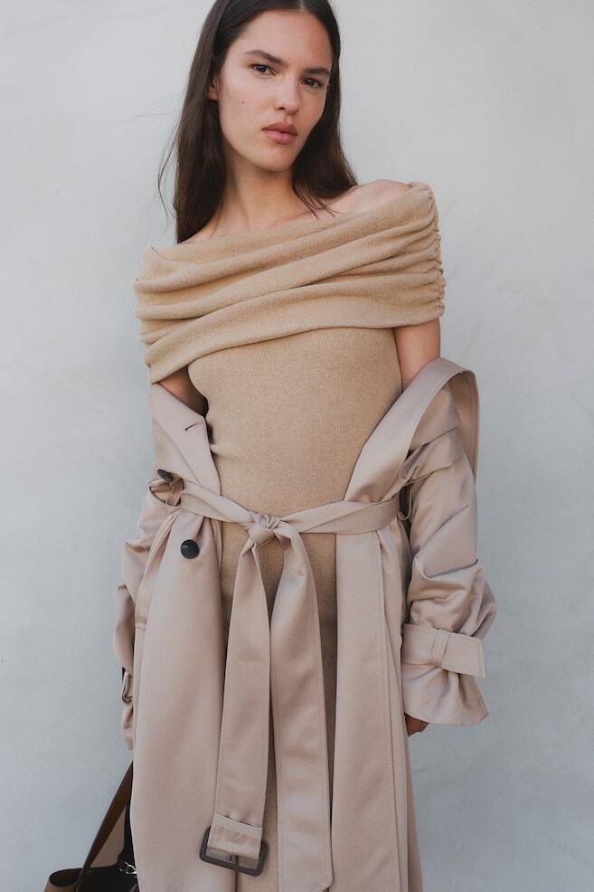Платье с открытыми плечами H&M, бежевый 3 080₽