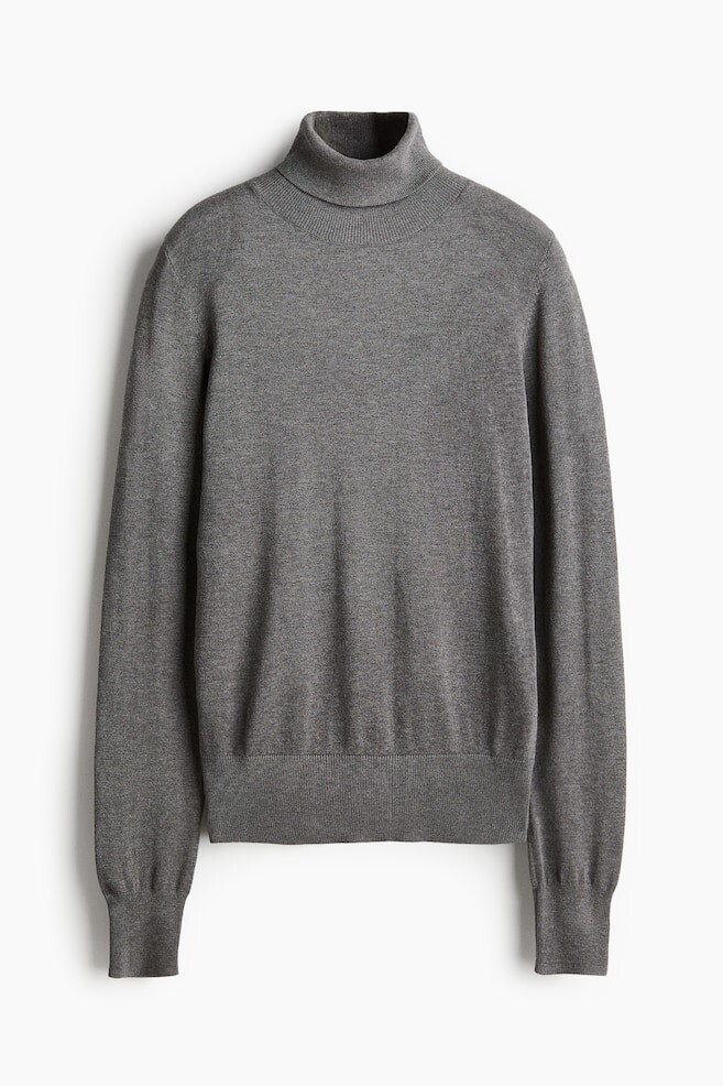 Свитер тонкой вязки из мягкой смесовой вискозы. Водолазка в рубчик, манжеты и низ в рубчик.