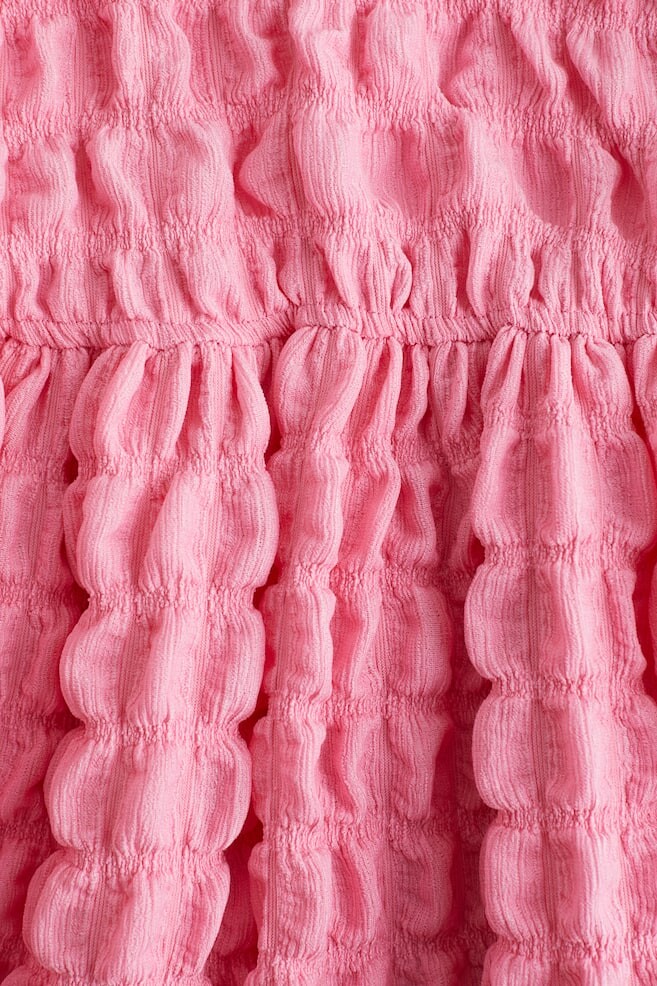 Бренд: H&M Цвет: розовый Платье с короткими рукавами из структурированного трикотажа с круглым вырезом, вырезом «капля» с пуговицей на шее и присборенным разделительным швом посередине. ДЛИНА: До колена ДЛИНА РУКАВА: Короткий рукав ПОСАДКА: Свободный крой СТИЛЬ: Круглый вырез, каплевидный вырез ВЫРЕЗ: Круглый вырез СТИЛЬ РУКАВА: Рукава-фонарики ОПИСАНИЕ: Ярко-розовый, Однотонный цвет