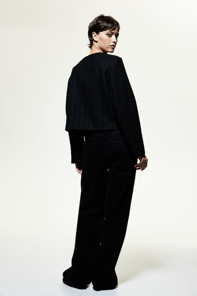 Тканевый пиджак с круглым вырезом, планкой и декоративными клапанами на пуговице. Фед.