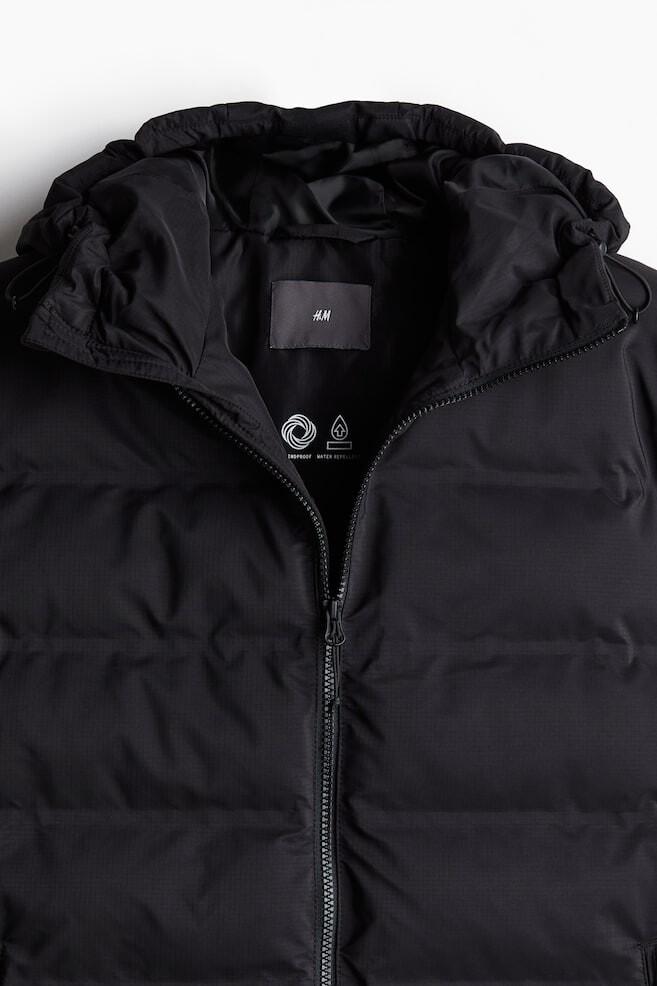 Стеганый пуховик с воротником стойкой, капюшоном на кулиске и молнией спереди. Боковые карманы и внутренний прорезной карман. Регулярная посадка. Эластичные манжеты и потайная кулиска по краю. Фед.
