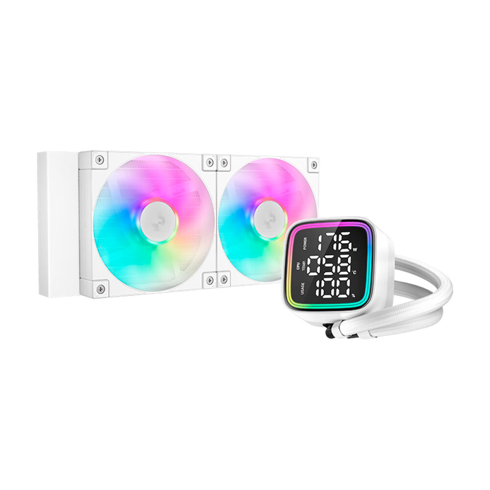 LD240 WH - это переход к следующему этапу в эволюции жидкостных систем охлаждения DeepCool. Все то, что вы любите в DeepCool AIO предыдущего поколения, но теперь с многострочным экраном состояния процессора и насосом 5-го поколения! Освободите драгоценное место на рабочем столе ПК, переместив программное обеспечение для мониторинга процессора с экрана на крышку помпы насос в вашем компьютере.