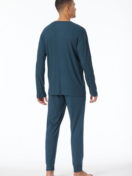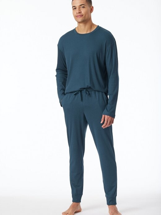 Бренд: Schiesser Цвет: синий Наружный материал: 55 % хлопок, 40 % модал, 5 % эластан Обычный цикл стирки 40°C Гладить при умеренной температуре при температуре не более 150 °C Обычная барабанная сушка Возможна влажная чистка (бережная). профессиональная чистка) Не отбеливать