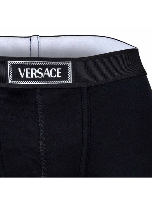 Элегантные мужские боксеры от VERSACE. Качественные трусы из эластичного хлопкового трикотажа. Тканый эластичный пояс с надписью-логотипом.